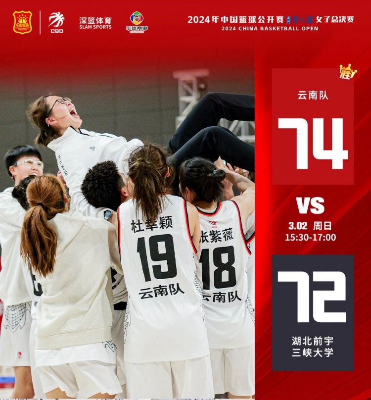 3月2日,2024年中國籃球公開賽洋河夢之藍女子總決賽結束了最后一個比賽日的較量。最終,云南隊奪得本次總決賽冠軍。