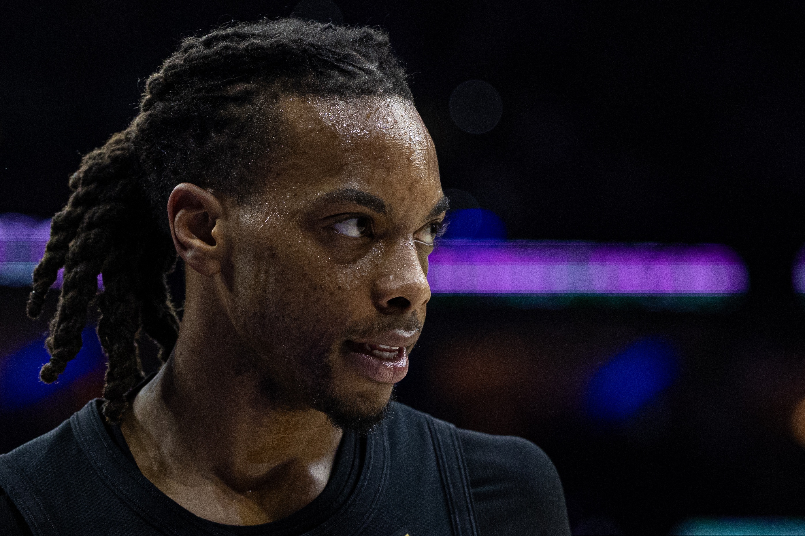 去年,挫折再次襲來。一系列傷病困擾接踵而至:包括頭部受傷、腰部疼痛反復(fù)發(fā)作,以及下巴骨折不得不接受手術(shù)。加蘭缺席了19場(chǎng)比賽,在下巴被固定期間,他只能通過吸管進(jìn)食。在場(chǎng)外,他還經(jīng)歷了祖母的離世,承受著巨大的悲痛。即便如此,他依然能場(chǎng)均貢獻(xiàn)18.0分6.5次助攻,三分球命中率37.1%,幫助騎士隊(duì)打進(jìn)了分區(qū)半決賽。