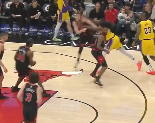 文森特壓哨三分&詹姆斯10+5+7!湖人半場(chǎng)反超公牛1分