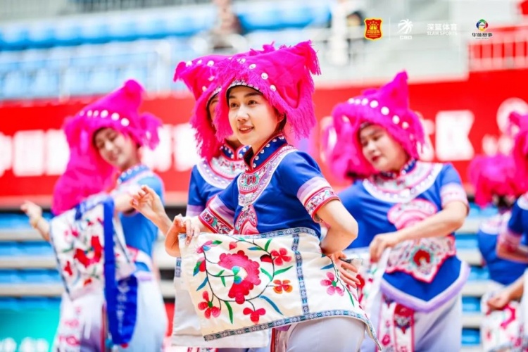 開(kāi)幕式上,云南省籃球協(xié)會(huì)、文山州籃球協(xié)會(huì)、文山州硯山縣政府、文山州教育體育局、華體賽事(北京)體育管理有限公司代表以及贊助商代表紛紛蒞臨現(xiàn)場(chǎng)。隨后,極具地域文化特色的彝族舞蹈驚艷登場(chǎng),舞者們以?xún)?yōu)美的舞姿、靈動(dòng)的韻律和獨(dú)特的魅力風(fēng)情,為賽事正式拉開(kāi)了大幕。