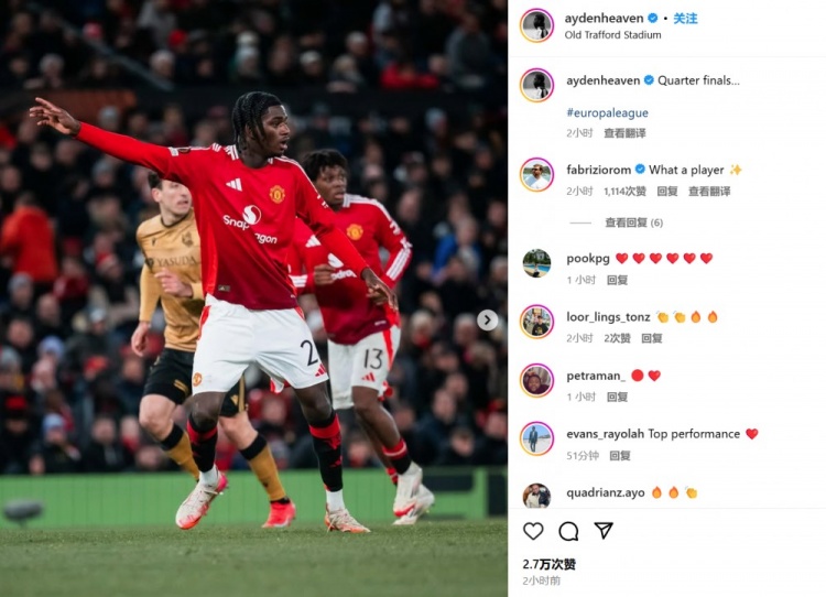 海文也在賽后通過社媒曬出自己的比賽照,并配文:“晉級(jí)八強(qiáng)戰(zhàn)…#歐聯(lián)杯#”。名記羅馬諾也現(xiàn)身評論區(qū)夸贊:“多么出色的球員。”