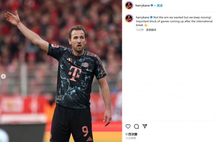 凱恩也在賽后通過社媒曬出比賽照,并表示:“沒有取得我們想要的勝利,但我們會繼續(xù)前進(jìn)。在國家隊比賽周之后,還會有更重量級的比賽等著我們????”。