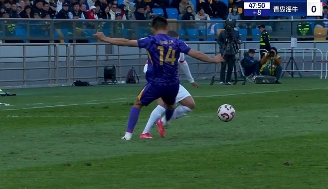 第31分鐘,青島海牛禁區(qū)里一次頭球攻門被門將飛身撲出底線?!?/p>